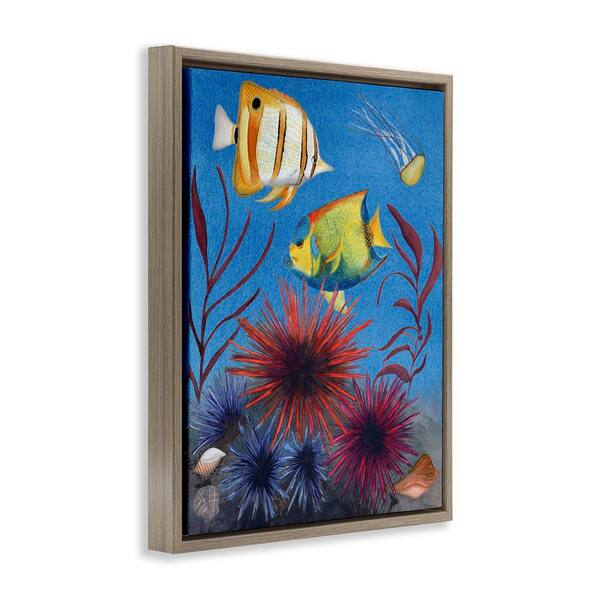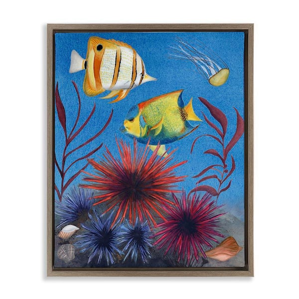 Seafaring Fish and Urchins by Michelle Ingari Designs Brown Floater Frame Animal Graphic Art Print 21 in. x 17 in.