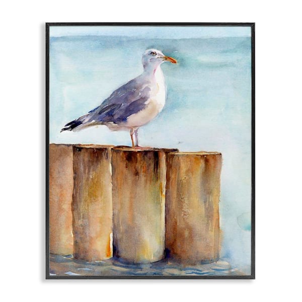 Seagull's Perch by Sea by John Keeling Black Framed Coastal Giclee Art Print 20 in. x 16 in.
