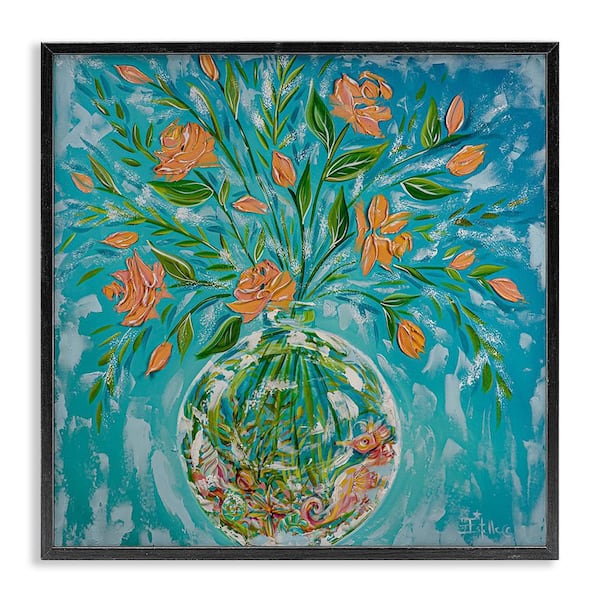 Seahorse Fish Bowl Bouquet by Estelle Grengs Black Framed Coastal Giclee Art Print 12 in. x 12 in.