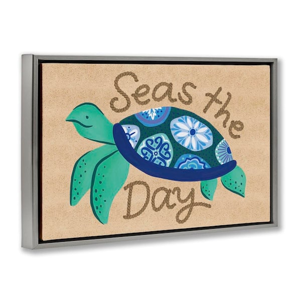 Seas The Day Turtle by Deborah Curiel Gray Floater Frame Coastal Graphic Art Print 17 in. x 25 in.