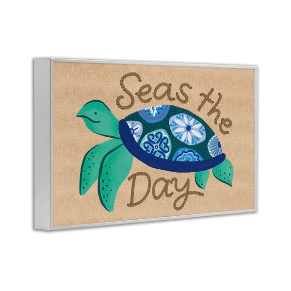Seas The Day Turtle by Deborah Curiel White Framed Coastal Giclee Art Print 12 in. x 18 in.