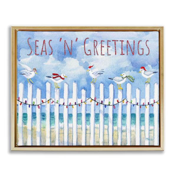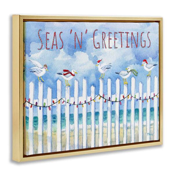 Seas 'n' Greetings Seagulls by Paul Brent Gold Floater Frame Animal Graphic Art Print 25 in. x 31 in.