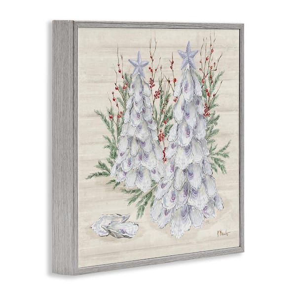 Seashells & Holly Trees by Paul Brent Gray Framed Coastal Giclee Art Print 17 in. x 17 in.