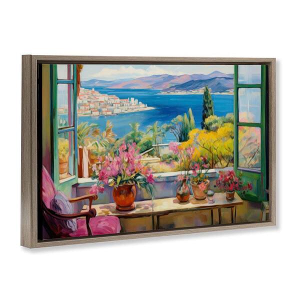 Seaside Window View by LSR Design Studio Brown Floater Frame Nature Graphic Art Print 21 in. x 31 in.
