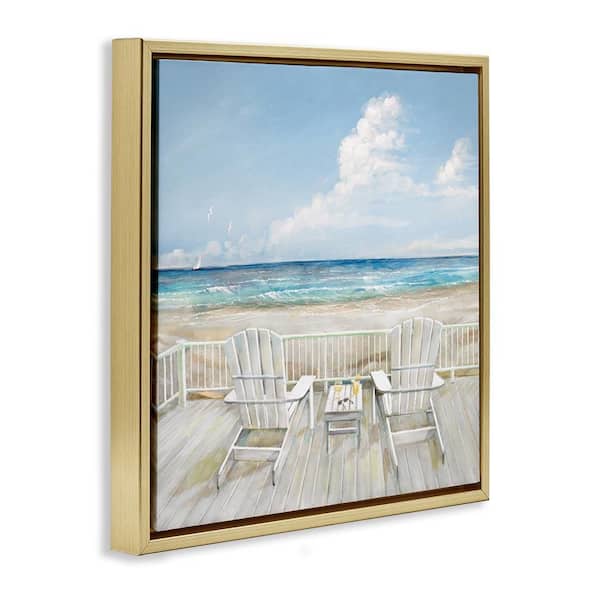 Seats Overlooking Beach by Ruane Manning Gold Floater Frame Coastal Graphic Art Print 18 in. x 18 in.