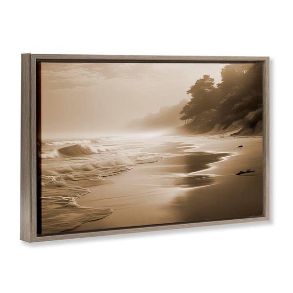 Sepia Smooth Beach Landscape by Noah Bay Brown Floater Frame Nature Graphic Art Print 17 in. x 25 in.