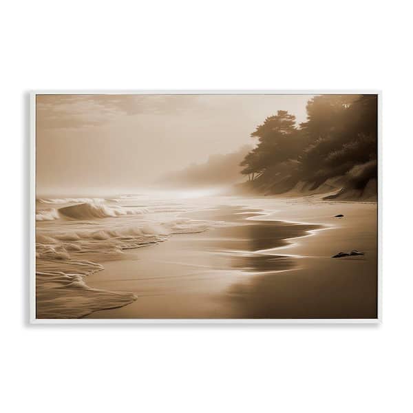 Sepia Smooth Beach Landscape by Noah Bay White Framed Nature Giclee Art Print 16 in. x 24 in.
