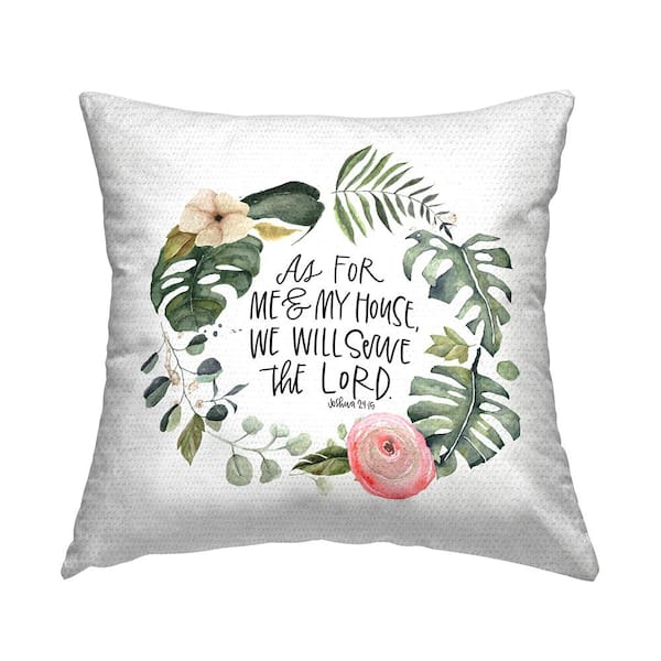Serve the Lord Joshua 24:15 Tropical Palms Green Square Outdoor Throw Pillow