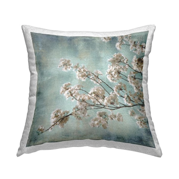 Shabby Chic Cherry Blossoms Blue Square Outdoor Throw Pillow