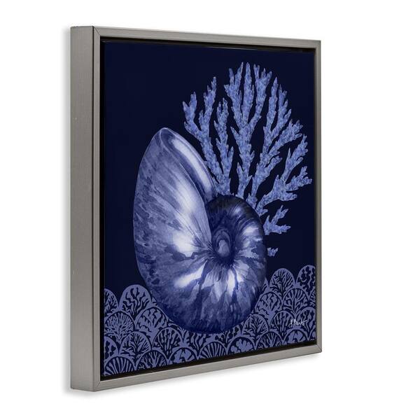 Shadow Nautilus Shell by Paul Brent Gray Floater Frame Coastal Graphic Art Print 18 in. x 18 in.