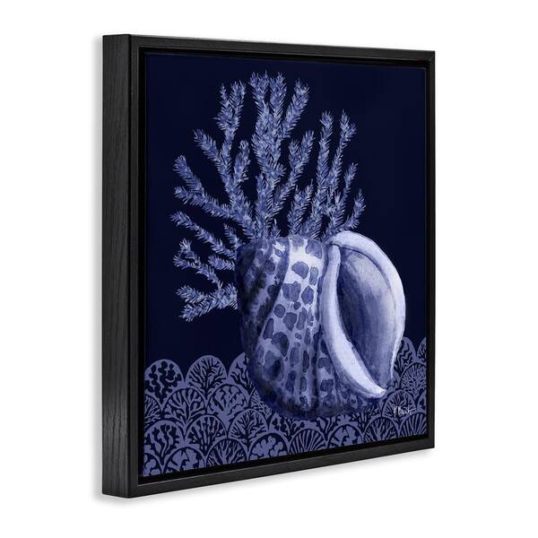 Shadow Shell Patterned by Paul Brent Black Floater Frame Coastal Graphic Art Print 25 in. x 25 in.