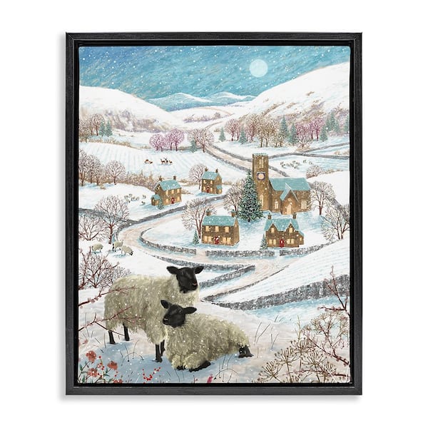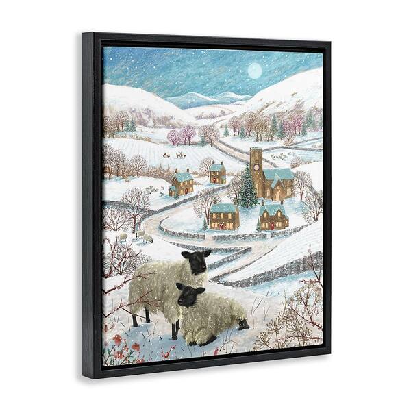 Sheep on Wintery Hill by Pip Wilson 1-Piece Floater Frame Graphic Print Animal Poster Art Print 21 in. x 17 in.