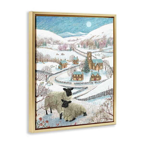 Sheep on Wintery Hill by Pip Wilson 1-Piece Floater Frame Graphic Print Animal Poster Art Print 21 in. x 17 in.