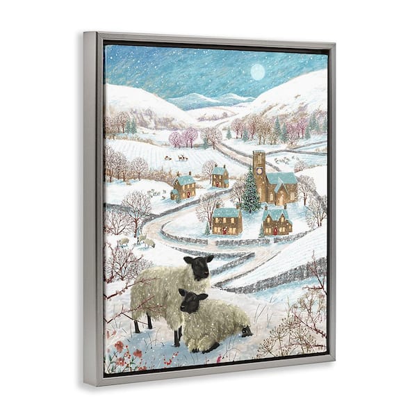 Sheep on Wintery Hill by Pip Wilson 1-Piece Floater Frame Graphic Print Animal Poster Art Print 31 in. x 25 in.