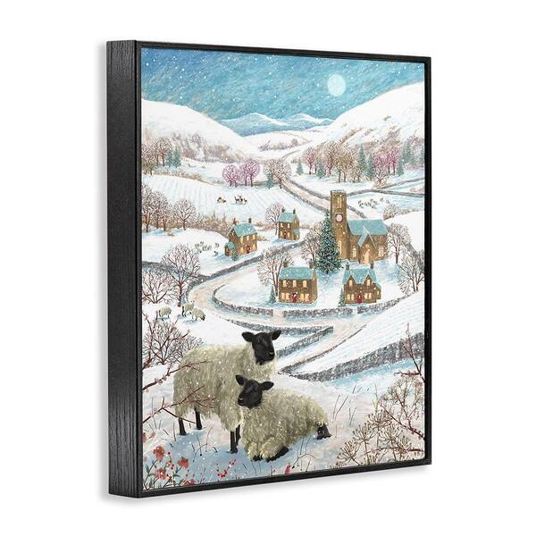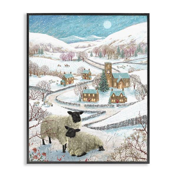 Sheep on Wintery Hill by Pip Wilson 1 Piece Framed Graphic Print Animal Poster Art Print 30 in. x 24 in.