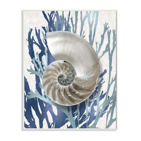 "Shell Coral Beach Blue Design" by Caroline Kelly Unframed Nature Wood Wall Art Print 10 in. x 15 in.
