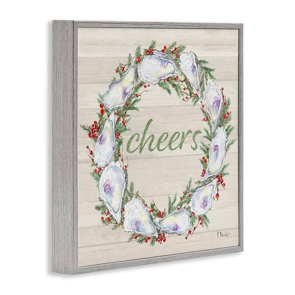 Shells & Holly Cheers by Paul Brent Gray Framed Typography Giclee Art Print 24 in. x 24 in.