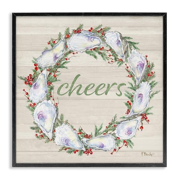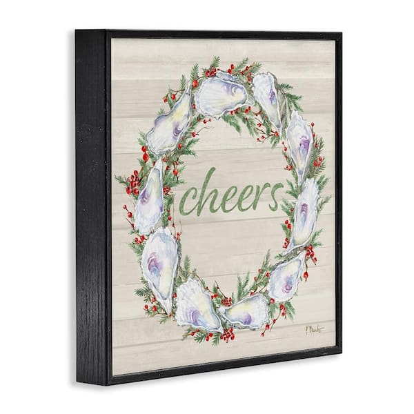 Shells and Holly Cheers by Paul Brent Black Framed Typography Giclee Art Print 12 in. x 12 in.