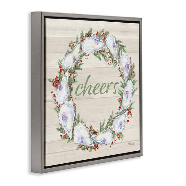 Shells and Holly Cheers by Paul Brent Gray Floater Frame Typography Graphic Art Print 18 in. x 18 in.