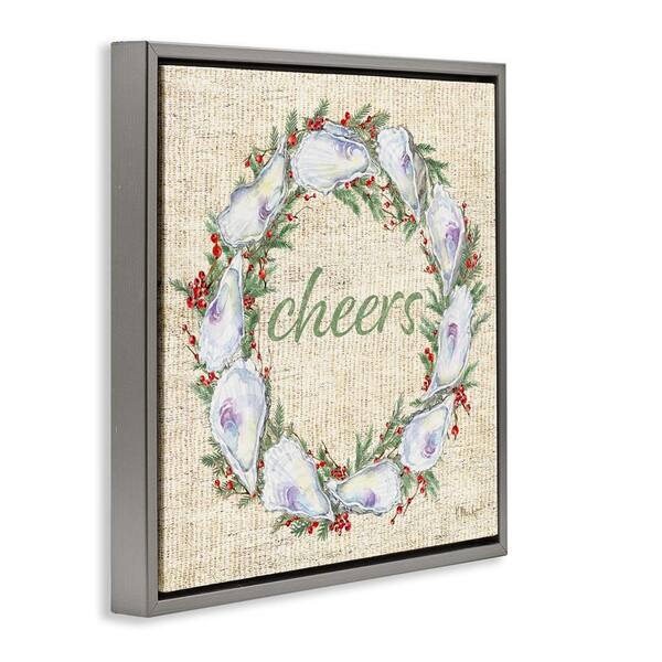 Shells and Holly Wreath by Paul Brent Gray Floater Frame Typography Graphic Art Print 18 in. x 18 in.