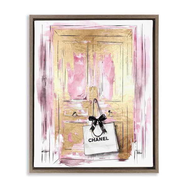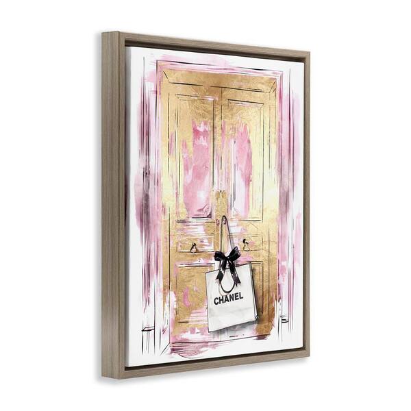 Shopping Bag on Door by Svetlana Aleynikova Brown Floater Frame Abstract Graphic Art Print 31 in. x 25 in.