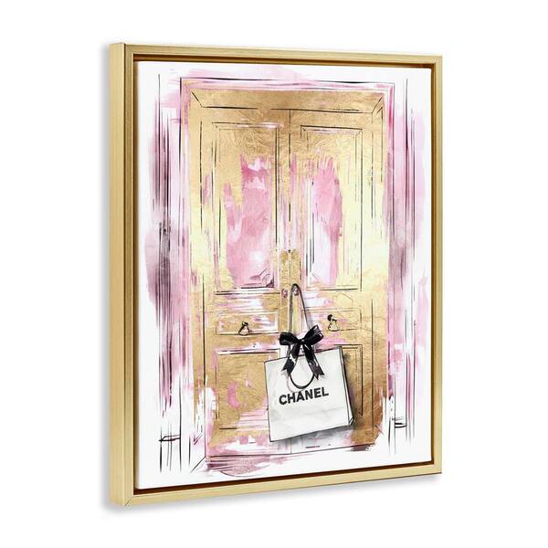 Shopping Bag on Door by Svetlana Aleynikova Gold Floater Frame Abstract Graphic Art Print 21 in. x 17 in.