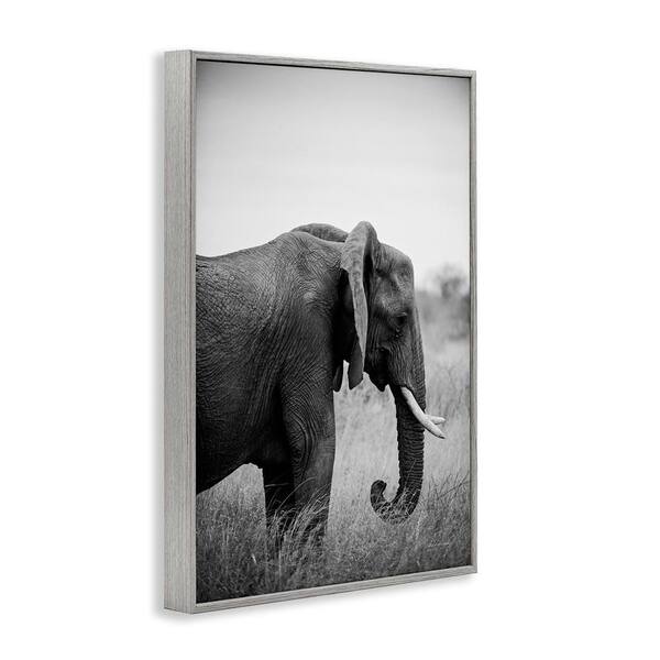 Side Profile Elephant by Sharon Vardy Gray Framed Animal Giclee Art Print 24 in. x 16 in.