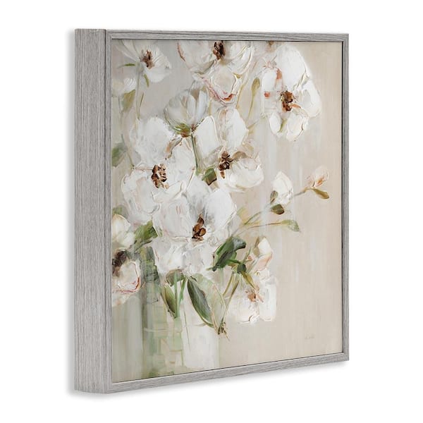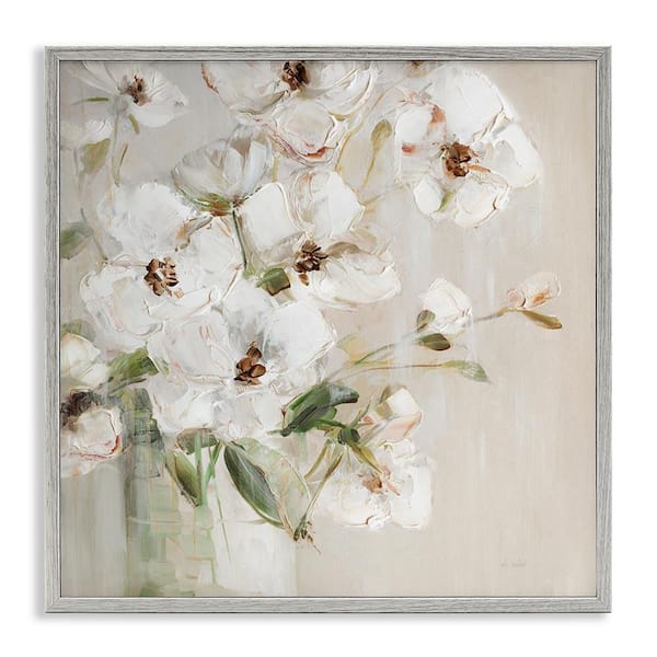 Simple Blossoms on Beige by Sally Swatland Gray Framed Nature Giclee Art Print 24 in. x 24 in.