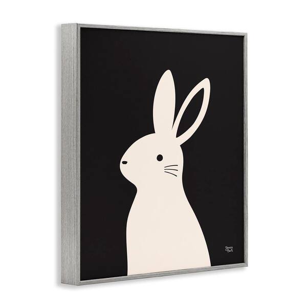 Simple White Bunny by Jessica Beck Gray Framed Animal Giclee Art Print 14 in. x 11 in.