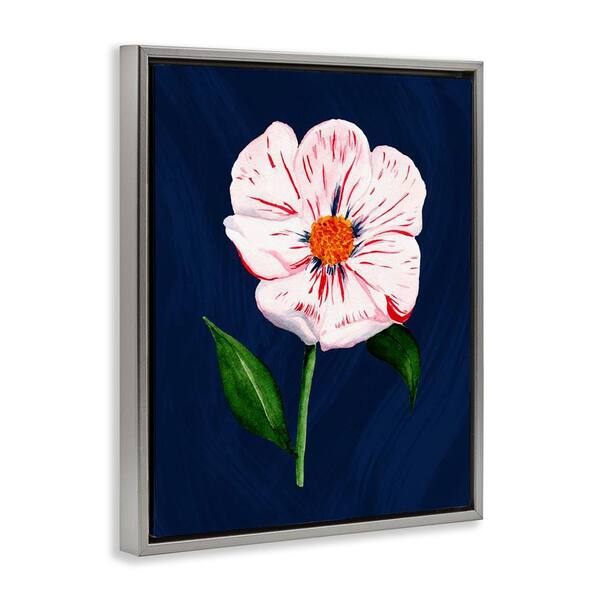 Single Cherry Blossom Bloom by Michelle Ingari Designs Gray Floater Frame Nature Graphic Art Print 31 in. x 25 in.