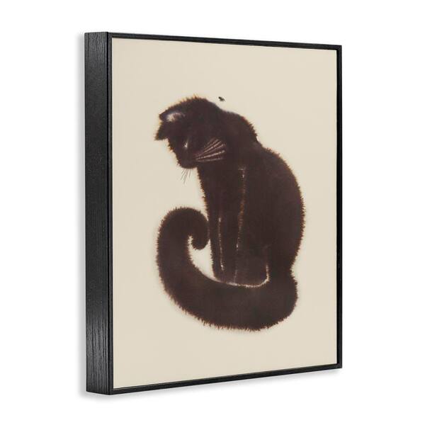 Sitting Cat Curved Tail by Grace Popp Black Framed Animal Giclee Art Print 20 in. x 16 in.