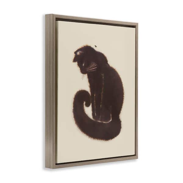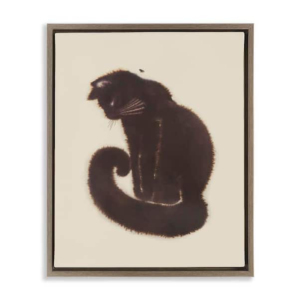 Sitting Cat Curved Tail by Grace Popp Brown Floater Frame Animal Graphic Art Print 31 in. x 25 in.