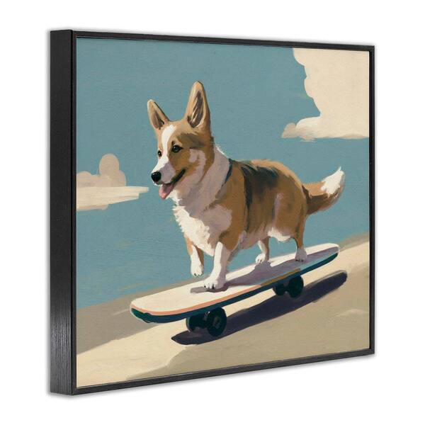 Skateboarding Corgi Dog by Svetlana Aleynikova Black Framed Animal Giclee Art Print 11 in. x 14 in.