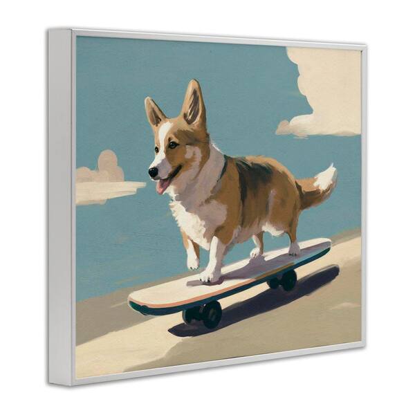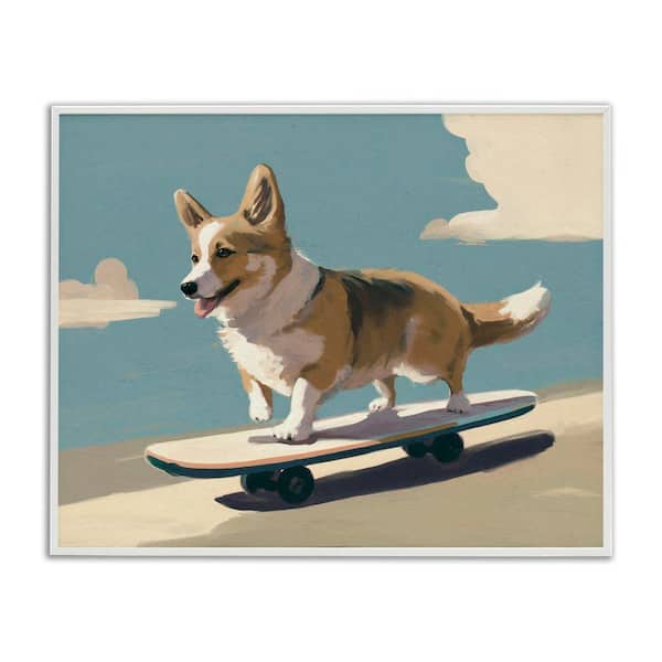 Skateboarding Corgi Dog by Svetlana Aleynikova White Framed Animal Giclee Art Print 11 in. x 14 in.
