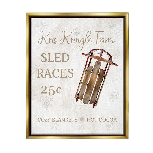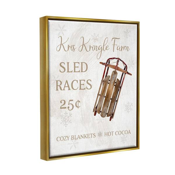 Sled Race Holiday Sign by Conrad Knutsen 1-Piece Floater Frame Graphic Print Typography Poster Art Print 31 in. x 25 in.