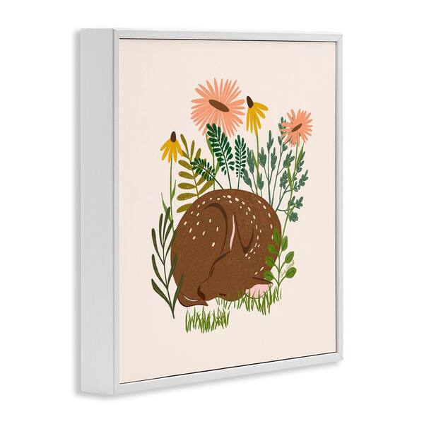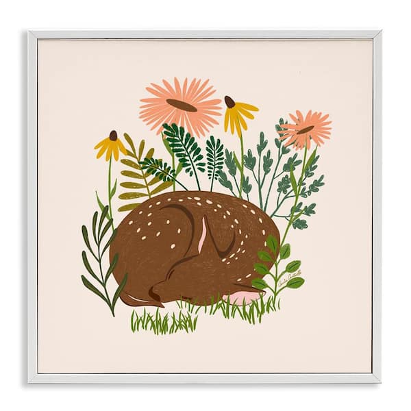 Sleeping Deer Among Daisies by Carrie Cantwell White Framed Animal Giclee Art Print 24 in. x 24 in.