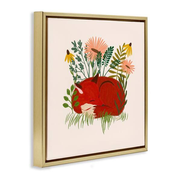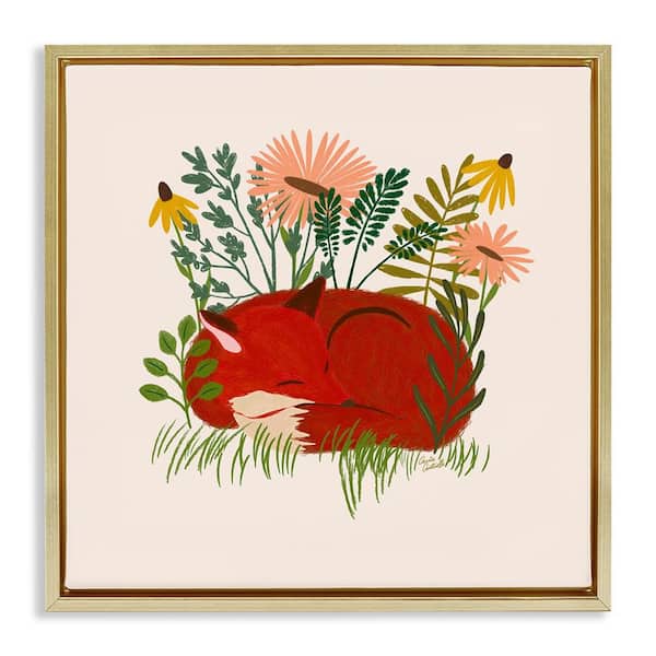 Sleeping Fox Among Daisies by Carrie Cantwell Gold Floater Frame Animal Graphic Art Print 25 in. x 25 in.