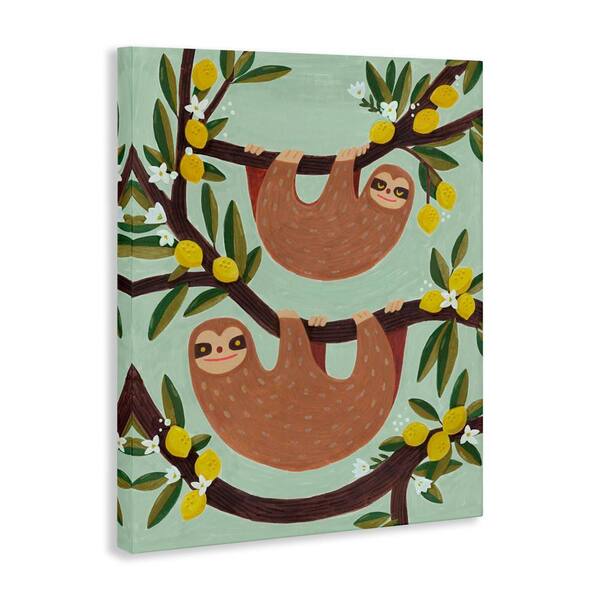 Sloths on Lemon Tree Branches by Irene Chan Unframed Animal Graphic Art Print 48 in. x 36 in.