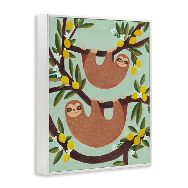 Sloths on Lemon Tree Branches by Irene Chan White Framed Animal Giclee Art Print 20 in. x 16 in.