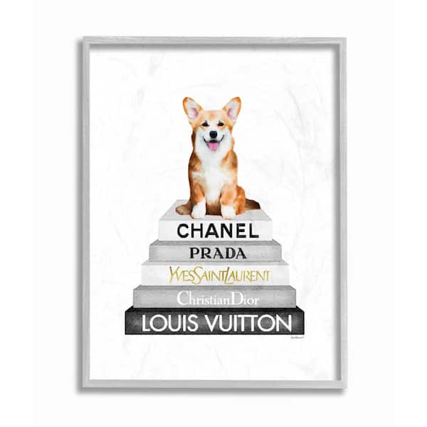 "Smiling Corgi Puppy on Glam Fashion Icon Bookstack" by Amanda Greenwood Framed Animal Wall Art Print 11 in. x 14 in.