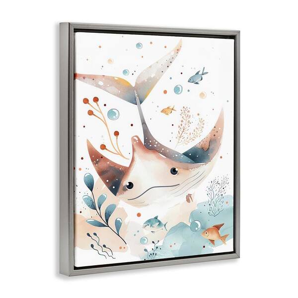 Smiling Manta Ray by Franklyn Gregory Gray Floater Frame Animal Graphic Art Print 31 in. x 25 in.