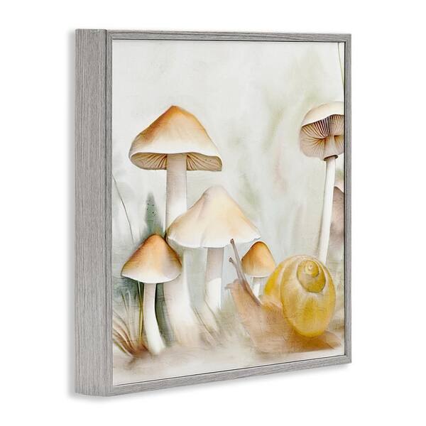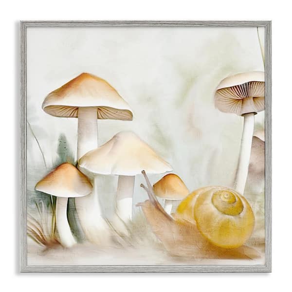 Snail and Natural Mushrooms by Kim Allen Gray Framed Nature Giclee Art Print 17 in. x 17 in.