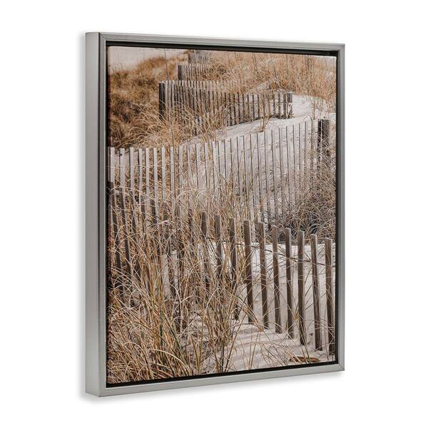 Snaking Beach Fence by LSR Design Studio Gray Floater Frame Coastal Graphic Art Print 21 in. x 17 in.