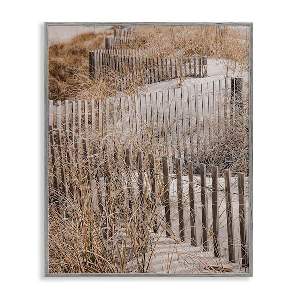 Snaking Beach Fence by LSR Design Studio Gray Framed Coastal Giclee Art Print 20 in. x 16 in.