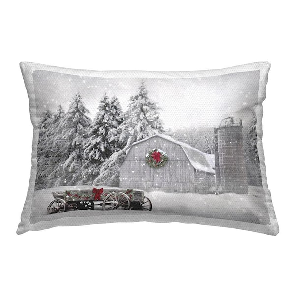 Snow Covered Farmland Grey Rectangular Outdoor Throw Pillow