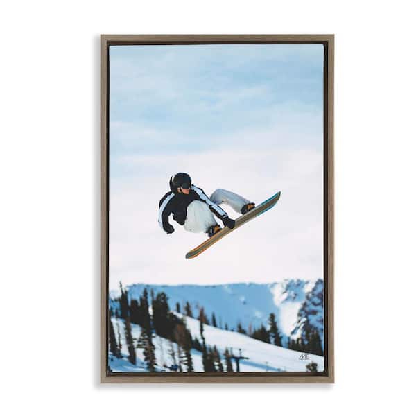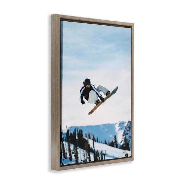 Snowboarder Air Tricks by Max Blakesberg Studios Brown Floater Frame Sports Graphic Art Print 31 in. x 21 in.