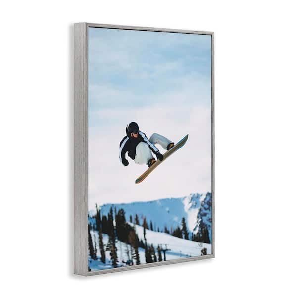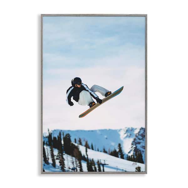 Snowboarder Air Tricks by Max Blakesberg Studios Gray Framed Sports Giclee Art Print 24 in. x 16 in.