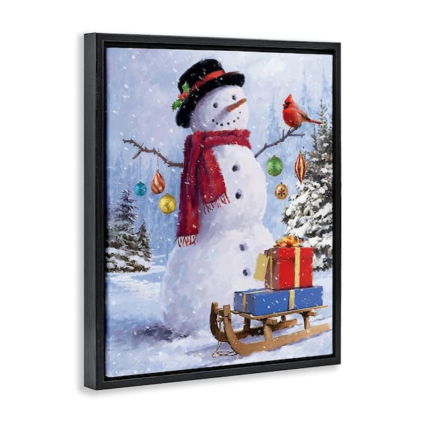 Snowman with Gift Sled by Jason Kirk 1-Piece Floater Frame Graphic Print Nature Poster Art Print 21 in. x 17 in.