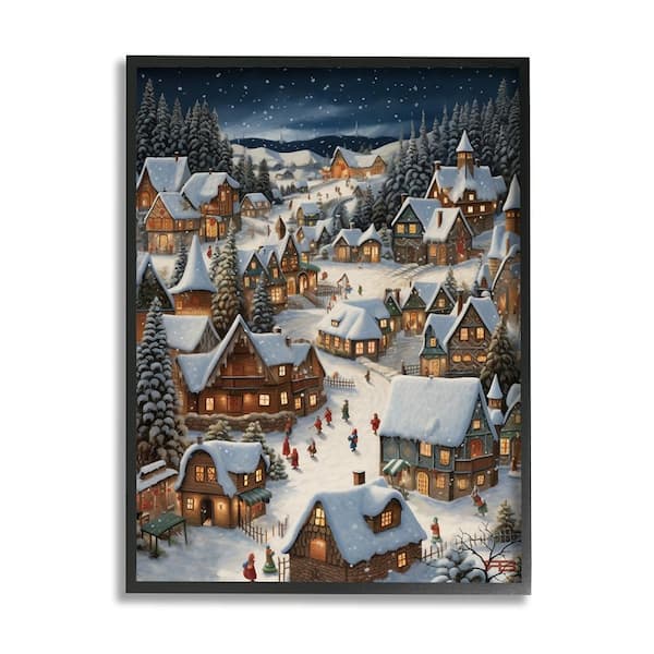 Snowy Christmas Village by RB 1 Piece Framed Graphic Print People Poster Art Print 14 in. x 11 in.