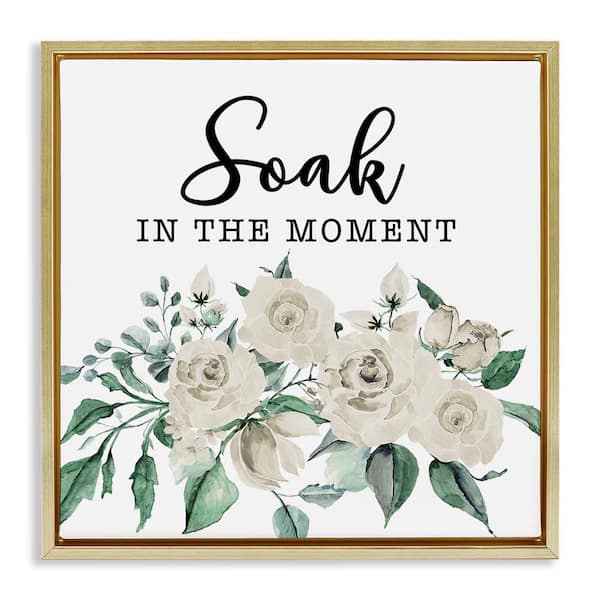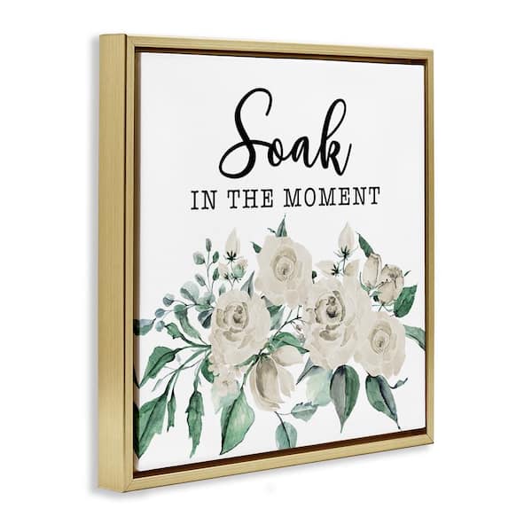Soak The Moment Florals by Masey St. Studios Gold Floater Frame Typography Graphic Art Print 25 in. x 25 in.